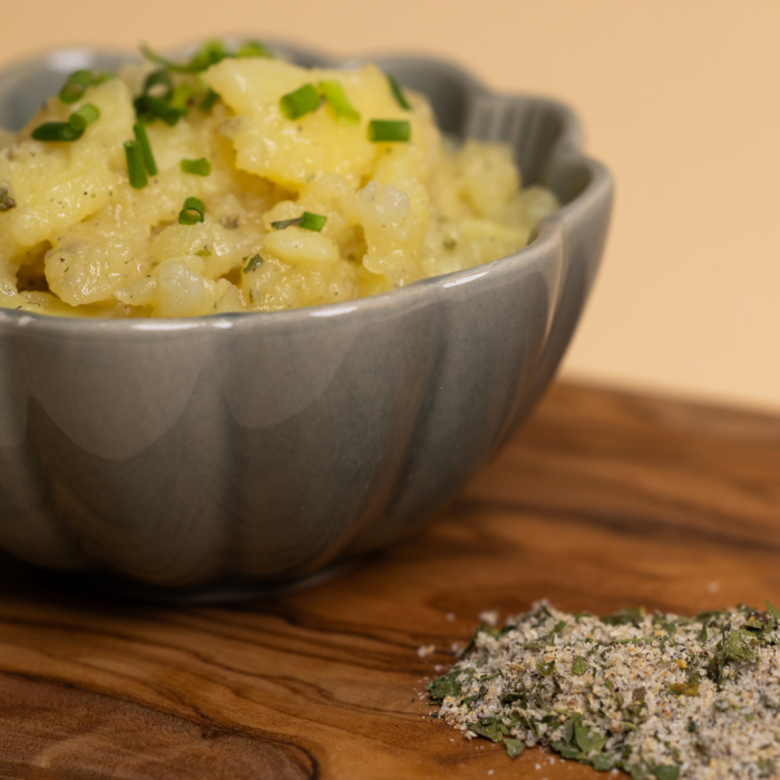 Ob badisch mit Brühe, vegetarisch oder mit Mayo – diese Gewürzmischung verleiht deinem Kartoffelsalat das gewisse Etwas! Die abgestimmte Kombination aus Meersalz, Zwiebeln, Pfeffer, Petersilie und Kurkuma sorgt für den perfekten Geschmack. Tipp: Gib die Würzmischung zu den noch warmen Kartoffeln, damit sich die Aromen optimal entfalten!