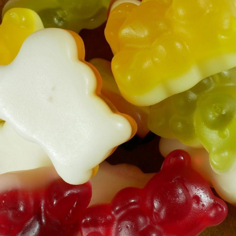 Fruchtsaftgummibärchen auf Joghurtschaum